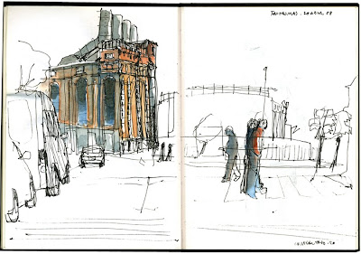 Desenho pessoas. Mais do que espaços, edifícios ou objectos, são as pessoas os indutores de todos os desenhos, o resto aparece de quando em vez por acréscimo.