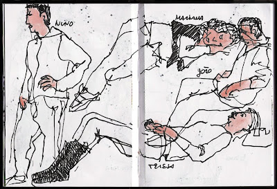 Éramos poucos mas bons. (outros aqui, aqui e aqui). Desenhámos e escrevemos rapidamente e depois conversámos. Muito. Enquanto tomávamos chá. Da minha longa experiência de conhecer pessoas que desenham cheguei à seguinte conclusão: são tudo óptimas pessoas.