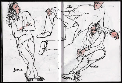 Também quero anunciar aqui o começo de um novo blog: "Os Melhores Diários Gráficos". Irá constar de desenhos feitos em cadernos por alunos do 11ºano da Escola Secundária Pedro Nunes, em Lisboa, na disciplina de Desenho A. Os desenhos são de tema livre ou, na falta deles, de temas propostos por mim. Começamos com a Inês e o João, dois desenhadores de grande qualidade.