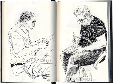 Os desenhos de hoje deviam ter sido editado há quase 15 dias, quando eu, o Zé, o Pedro, a Cláudia, o Filipe (não tem blog) e a Helena nos encontrámos para fazer uma espécie de Sketchcrawl ali para os lados das Docas em Alcântara. Acabei por os editar no UrbanSketchers (os dois últimos) e os restantes, já não sei porquê, tinham ficado na gaveta.