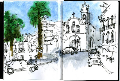 Fomos para o largo da Catedral desenhar o que nos apetecesse. O desenho está cheio de erros mas o tempo que lá passei não o esqueço.