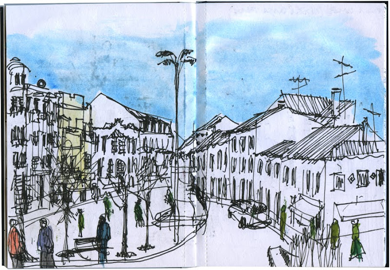 Apesar de haver ainda muitos espaços públicos que podiam ser ocupados, o número de esplanadas tem vindo, lentamente, a aumentar. Mas nós sabemos que por estas bandas as coisas demoram a acontecer. Sentei-me na esplanada do quiosque da Alameda D.Afonso Henriques. O ex cinema Império (hoje IURD) atrás da árvore, uma das torres do Técnico ao fundo...