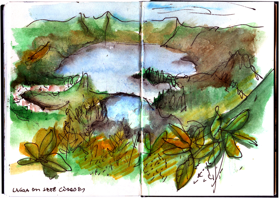Há quem goste mais da lagoa das Sete Cidade e outros da lagoa do Fogo. Eu prefiro a segunda. Mas são ambas lindíssimas. Os desenhos, como sempre, nunca fazem jus à beleza. Mas são memórias daquele momento.