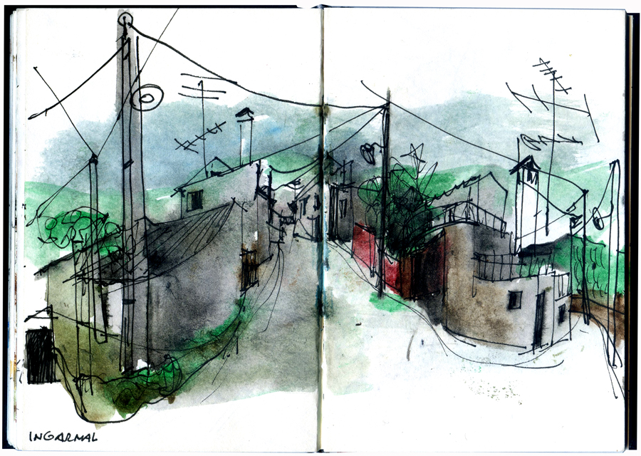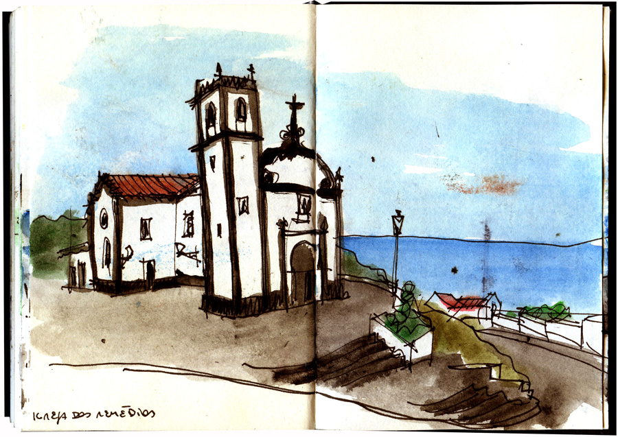 Igrejas é o que não falta em S.Miguel nos Açores. Desenhei estas como podia ter desenhado outras. Havia-as mais bonitas, com mais força, mas estas estavam num sítio calmo, à sombra, onde parei por acaso.