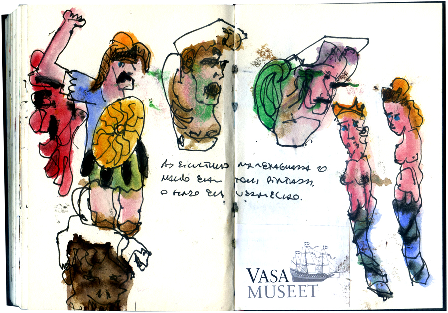 O Vasa é um navio sueco que se afundou no dia da sua viagem inaugural em 1628. Só em 1961 foi resgatado. Foi reconstruído quase na totalidade com o material original. O Museu de Vasa mantém uma investigação como o preservar e sobre tudo o que o rodeia. No último desenho fiz as esculturas na sua cor original.