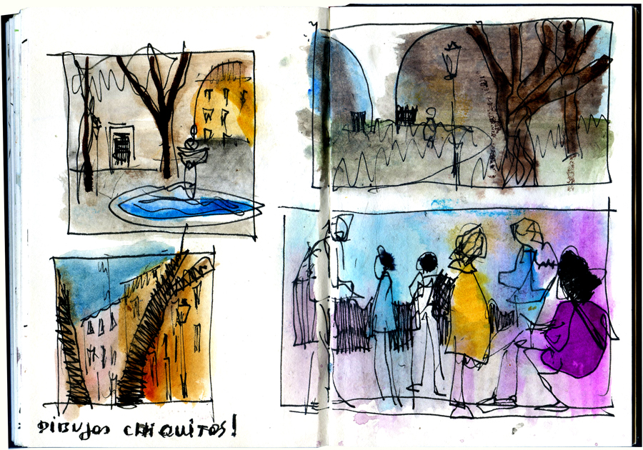 Gostava que os desenhos feitos para o jornal Público, que saem aos domingos, fossem reportagens, desenhos feitos lá, no sítio onde as coisas acontecem. Por vários motivos fáceis de perceber não é possível. No entanto o desenho cumpre um seu desígnio quando não há imagens de outro tipo. E aí o desenho produz uma e fica a ser a única que conhecemos. Por exemplo, o encontro na Rússia entre Putin e Tillerson. Sabemos que existiu mas não há fotos. Ou, se as há, não as conhecemos.