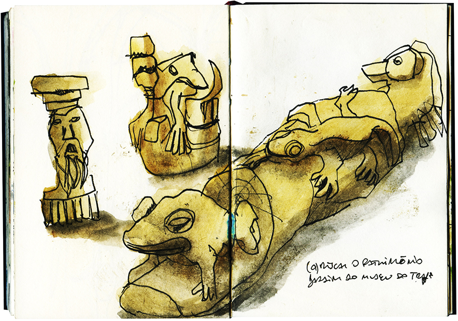 Uma ida a Guimarães e uns dias bem passados mas com poucos desenhos. O interior do velho café Milenário , a vista do Paço dos Duques com um tuk-tuk, que parecia mais um carro funerário, à frente, um desenho super rápido feito à noite e a casa Sezim nos arredores.