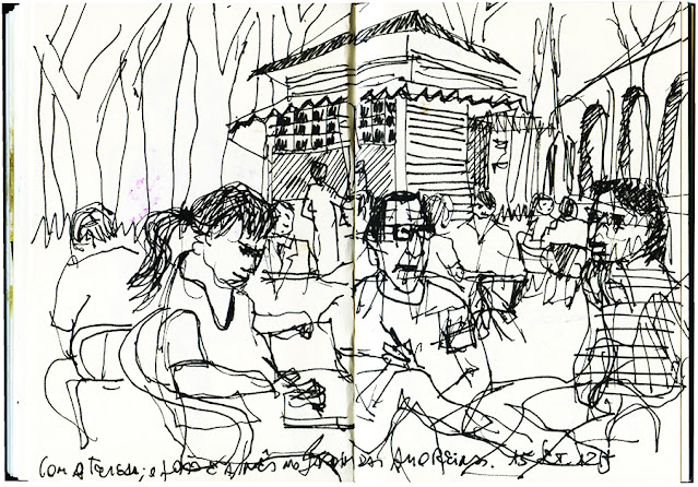 Sentarmo-nos numa esplanada e desenharmo-nos uns aos outros. É uma actividade tranquila. Comunicamos sem palavras. Uma espécie de meditação colectiva.