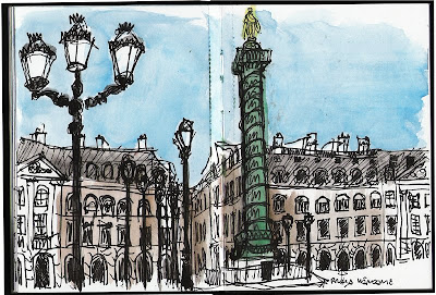 Nem todas as vezes que fui a Paris fui ver este quadro. Conheço pessoas que sempre que vão a uma certa cidade não prescindem de uma visita a uma certa pintura. Um Rothko em Londres, um Hopper em Nova Iorque. Eu não. Mas este pintor, Gustave Courbet, e esta enorme tela em particular, “O Atelier do Pintor”, no Museu D’Orsay, já o visitei vezes sem conta. E estou ali a olhar todos os pormenores, a relembrar-me das personagens que ele pintou, cada uma representando um certo tipo de pessoa. E a polémica que aquilo levantou na altura! E também a observar como os outros olham para ele, como se relacionam com aquela pintura que eu sinto como um pouco minha também. Este desenho foi uma pequena homenagem que lhe fiz.
