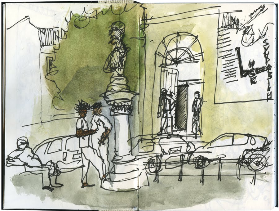 Enchemos a Faculdade de Belas Artes, e redondezas, de pessoas ávidas por desenhar. Foi bom. No dia anterior a jornalista Teresa Abecasis fez esta reportagem. O desenho foi acabado posteriormente.