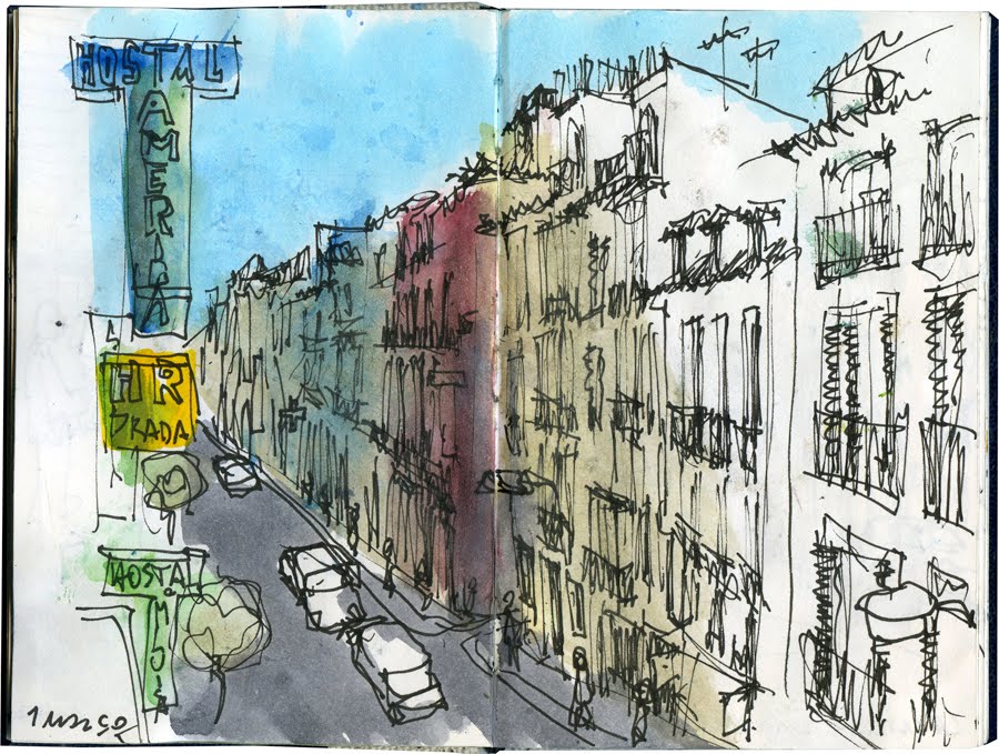 Vê-se bem o ambiente urbano da capital espanhola nos teus desenhos.