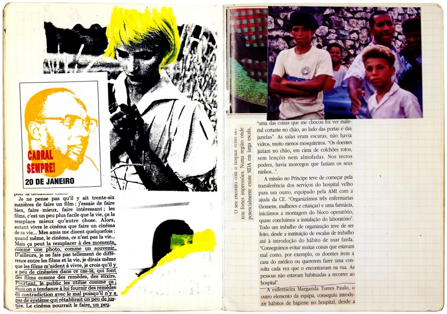 Durante o processo do filme "Casa da Lava", em 1994, Pedro Costa, realizador de cinema, foi reunindo num caderno “fotografias de imprensa, reportagens mais ou menos sociológicas, postais de pintura, imagens da história do cinema”. Foi uma maneira de descobrir o filme que estava a fazer. Usou, segundo ele diz, a “magia da colagem que é uma arte leve, infantil e barata como o cinema podia ser”.
