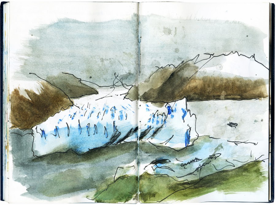 Para ir ao Perito Moreno, o glaciar móvel maior do mundo e ao qual vale a pena uma visita, tem que se apanhar uma camioneta na cidade mais próxima, El Calafate. Consegui um lugar ao lado do condutor o que me permitiu ir fazendo estes desenhos.