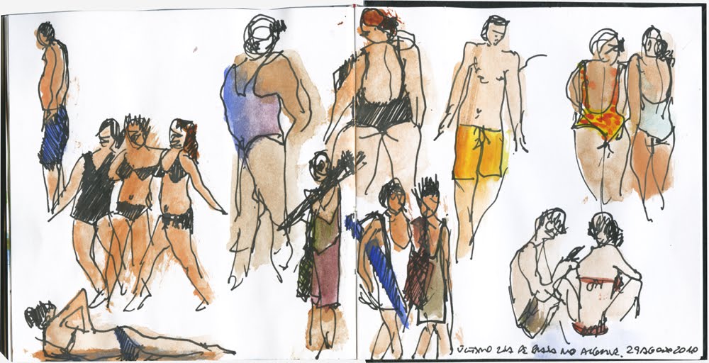 Na praia as pessoas ao sol são óptimos modelos. Mas, se nos sentarmos na areia e observarmos as pessoas que passam, também temos bons motivos.