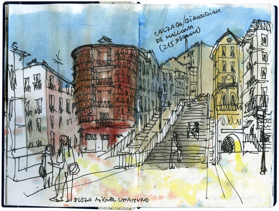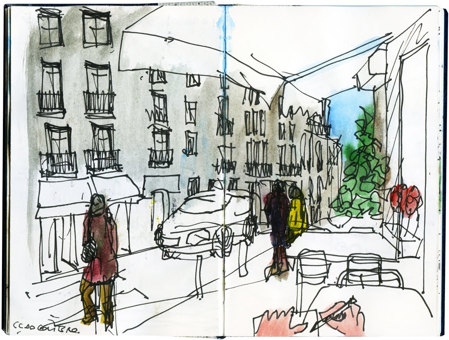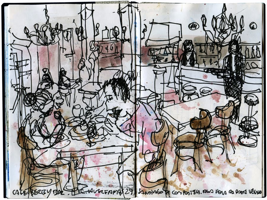 Uma das curiosidades de ver os cadernos de outros autores é o modo diversificado como cada um regista o mesmo tema. Quando, por exemplo, temos pela frente a tarefa de caracterizar uma cidade, onde vivemos, por meio de, essencialmente, desenhos, e sabendo que as opções são ilimitadas. Como fazer? Vejamos três exemplos, tirados de três páginas de livros já editados, de desenhadores que quiseram mostrar de uma maneira pessoal a cidade onde vivem. Nenhum dos exemplo pretende ser um roteiro turístico, mas sim mostrar a “sua” Barcelona.
