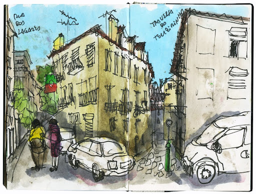 Calçada do Combro. Vejam os outros desenhos feitos, sensivelmente, do mesmo lugar.